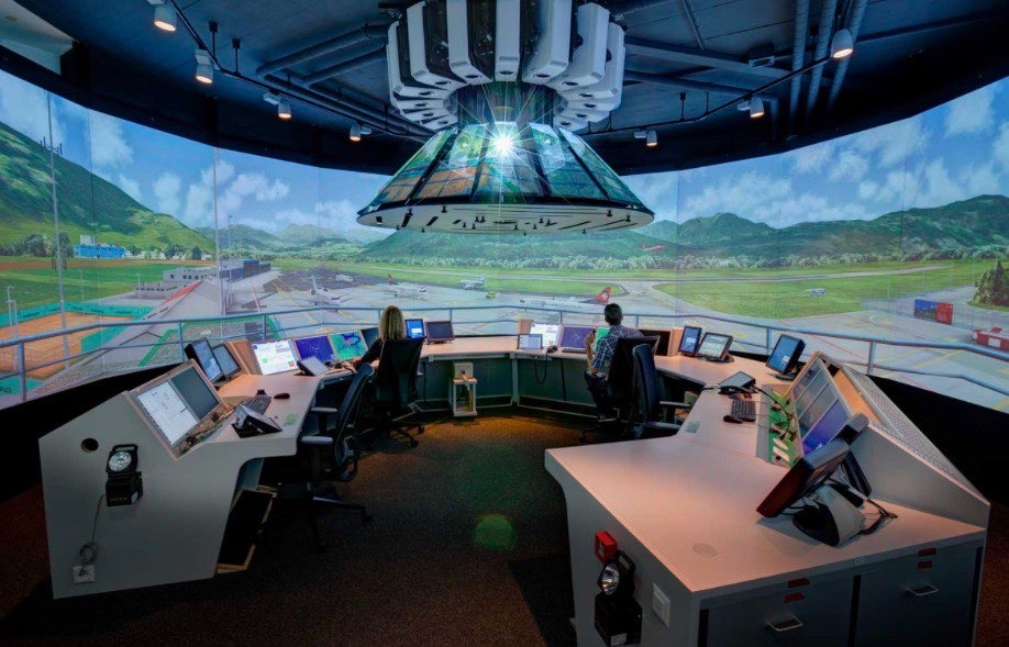 We began with a tour of the air control center, where air traffic controllers monitor airplanes in real time. They are responsible for managing each aircraft’s altitude and trajectory, as the airspace is organized into several layers. As we walked through the center, we could both hear and see the real‑time exchanges between the controllers and the pilots, which made the experience even more impressive. The control center has no daylight because natural light could reflect on the screens and reduce visibility, something that could be dangerous in such a high‑precision environment, it is also extremely quiet. The external control tower is dedicated solely to the visual supervision of approach, landing, and take‑off operations, in other words, the core of air traffic management takes place in the control center.